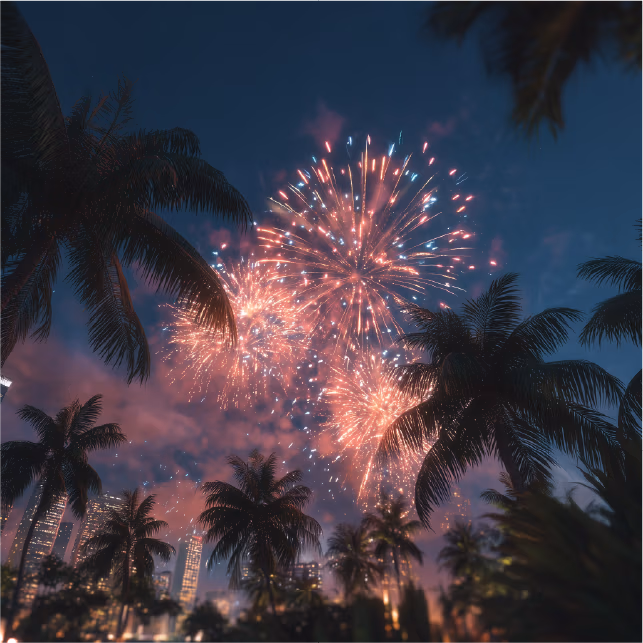 When the clock strikes midnight, look up because the sky above Biscayne Bay comes alive with a breathtaking firework show choreographed to music by world-renowned artists. Surrounded by palm trees, city lights, and waterfront breezes, this is Miami’s most iconic New Year’s Eve moment live, unforgettable, and absolutely magical.